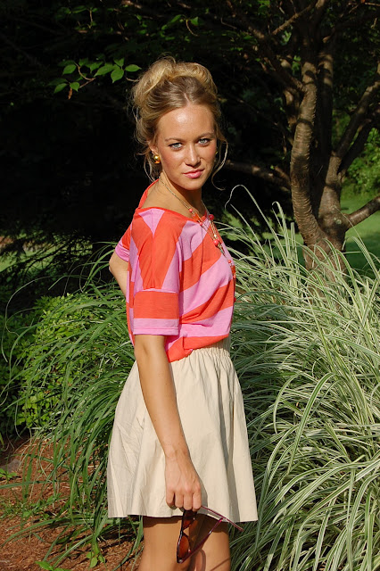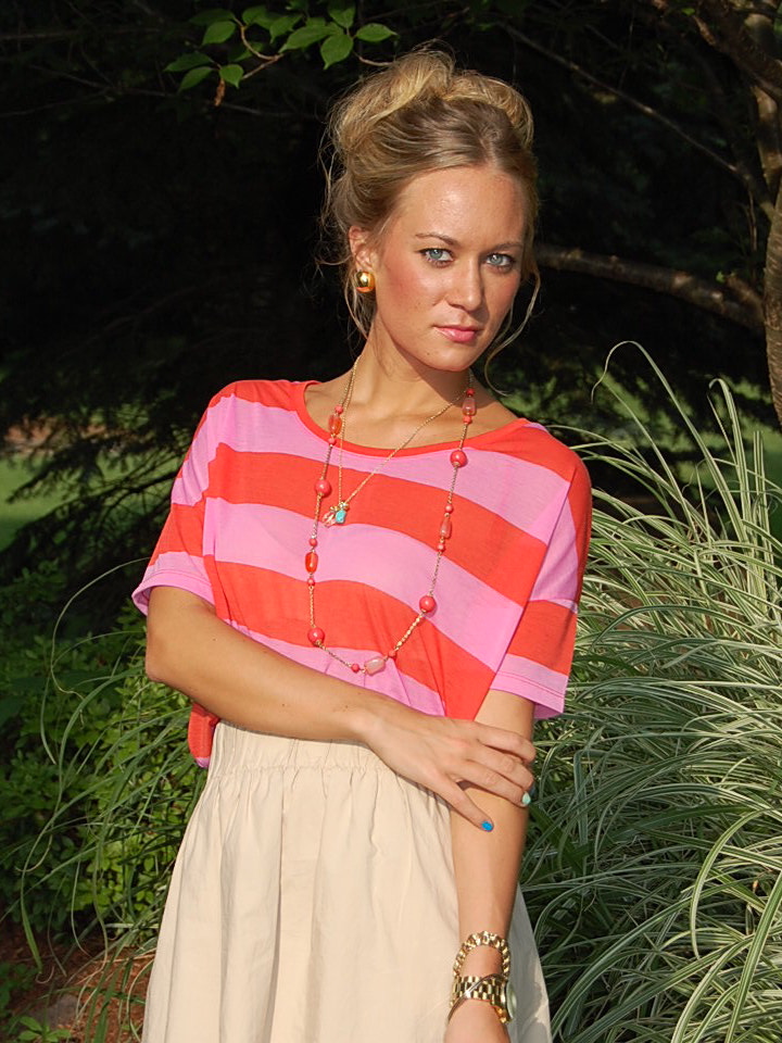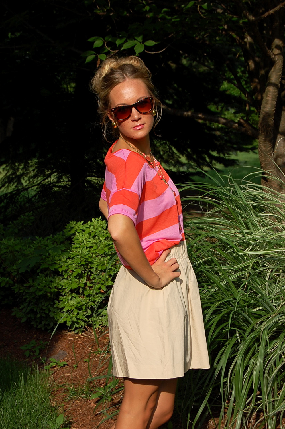 My first thought after the assignment was “oh no, what to wear?!” But after a quick trip to H&M earlier this week, I didn’t have to worry. This neon striped shirt was the perfect piece, and not to mention two of my favorite colors for summer piled in one breezy top.