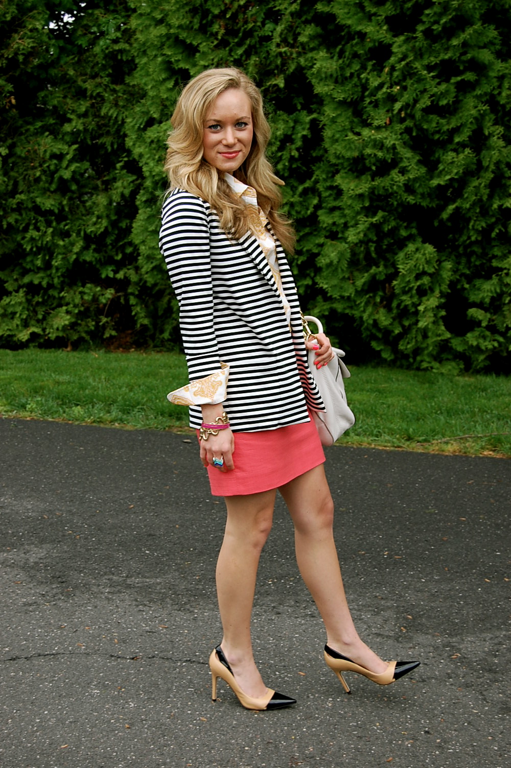 Stripes and pink – it’s big this year! You look great!