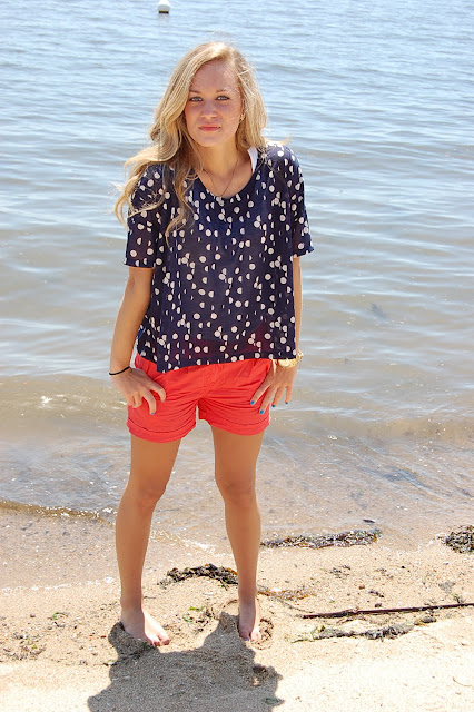 Loving that polka dot top, it is too cute! And I wish I was on that beach right now, it looks so beautiful!
