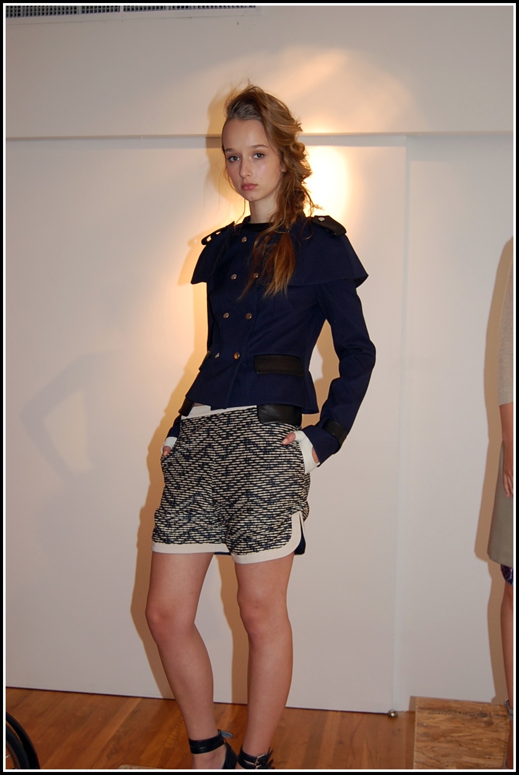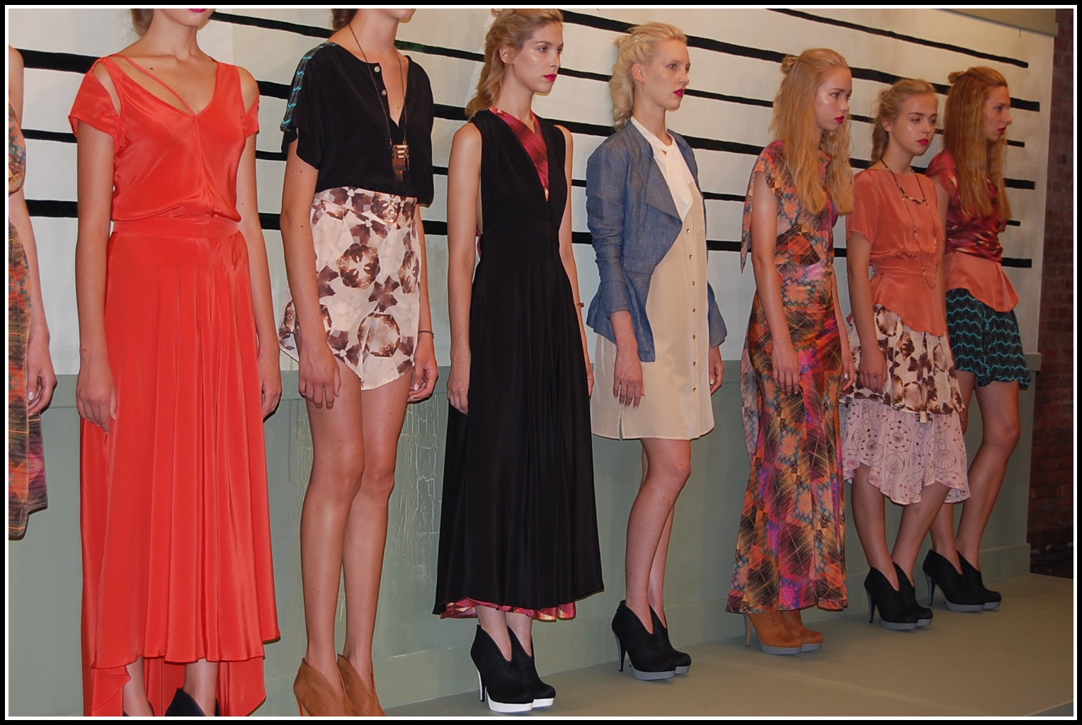 After Maisonette, Erika + I headed over to the Gretchen Jones presentation. For any of you Project Runway fans, yes, this is the same Gretchen Jones! Her collection was incredibly bright, cheerful, and just reminded me of laughing in the springtime – isn’t that what all SS collections should do? I loved the mixes of patterns and bright colors with denim and flowy dresses. Her line was Mexi-inspired, which you really could see and even feel through her pieces. She had a lovely little band playing live music, with a cute cocktail bar in which we fully indulged our cottony dry mouths with. A day running around the city makes you quite thirsty!