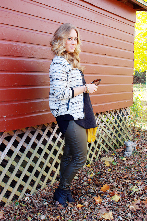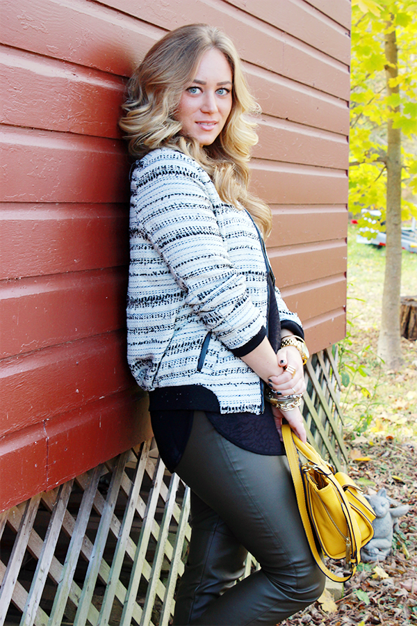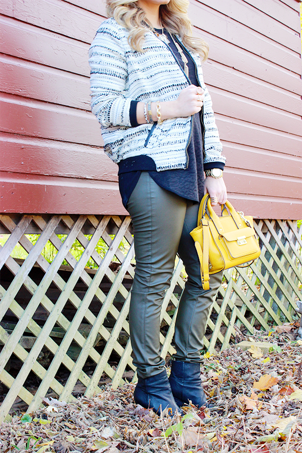 Knot Sisters Jacket (via shopbop) // Target Style Top // H&M Leather Pants // Vince Camuto Booties (similar) // Capwell Co. Tassel Necklace + Rings // The Glitter Vault Necklace // Phillip Lim x Target Bag