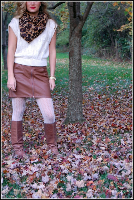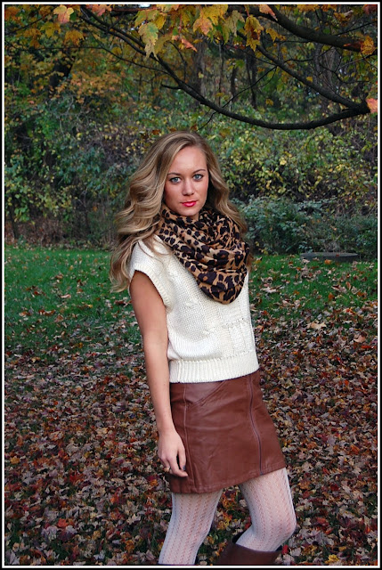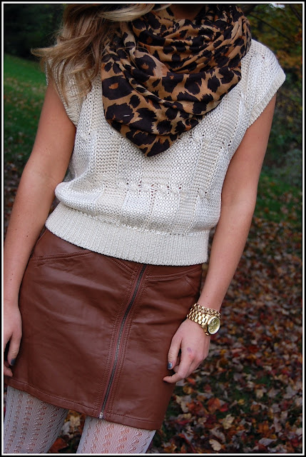 I love this! Very autumnal 🙂 The brown leather skirt with the cream is perfect